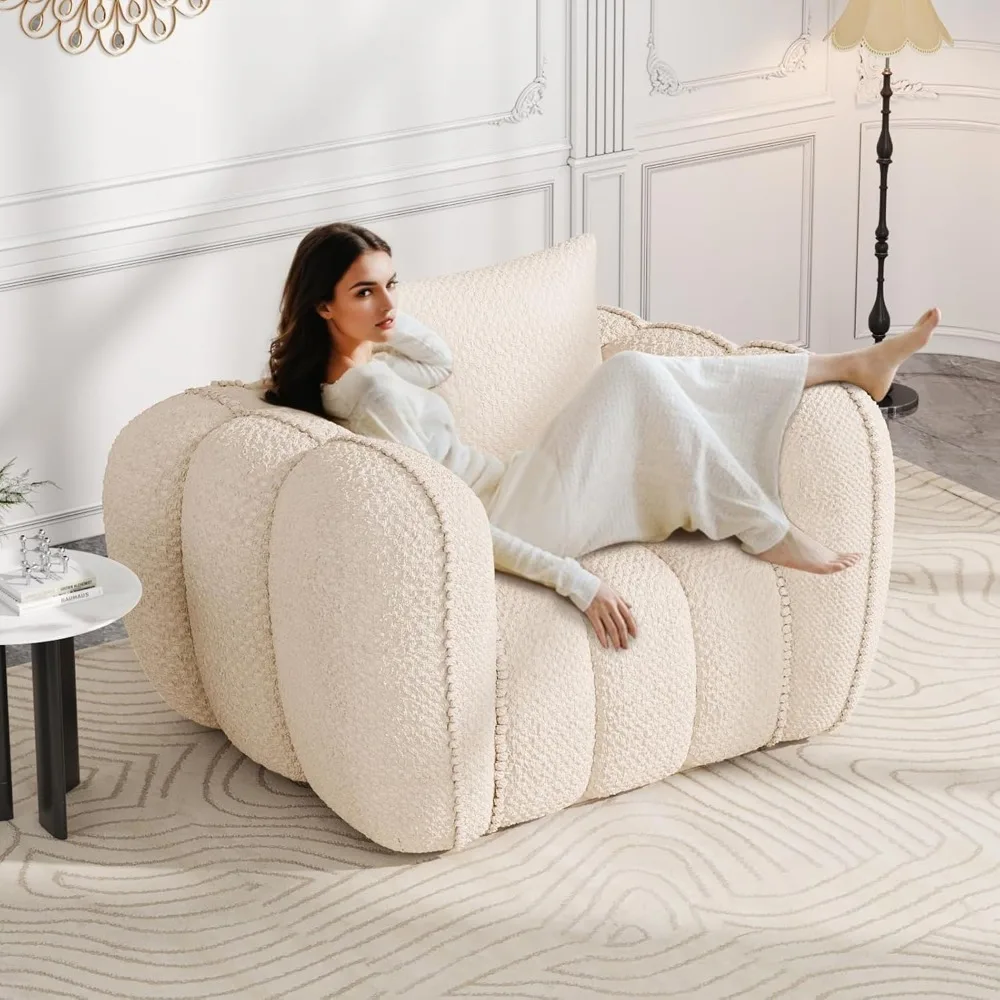 • PUMPKIN DESIGN WITH LUXE DETAILS: Crafted with a bold pumpkin-inspired silhouette and tailored diamond tufting, this oversized boneless couch chair combines avant-garde contours with tactile dimension. The semi-encased backrest and flared armrests create striking visual drama for modern interiors.